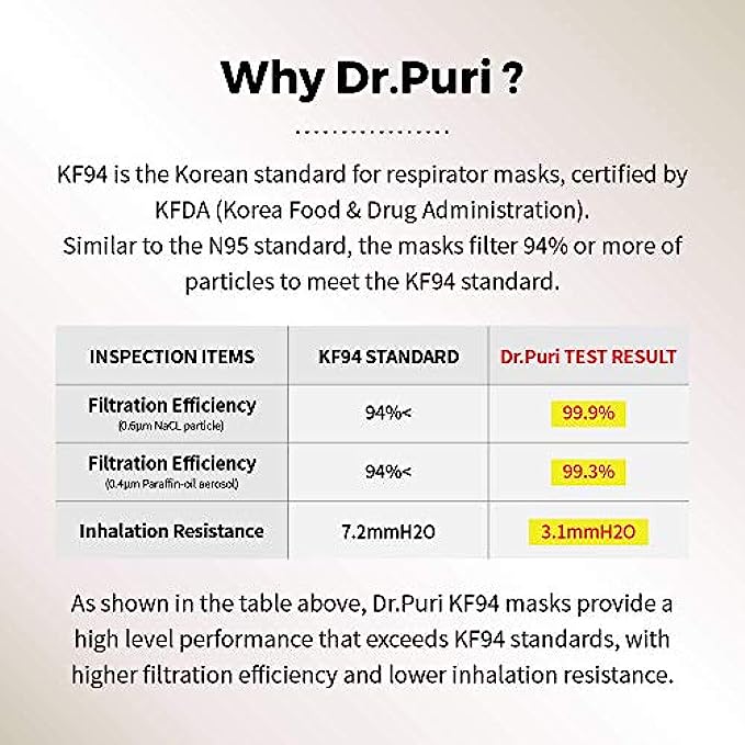 US FDA Registered and Korea FDA Approved. KF94 Grade Certified Premium Mask Made in South Korea