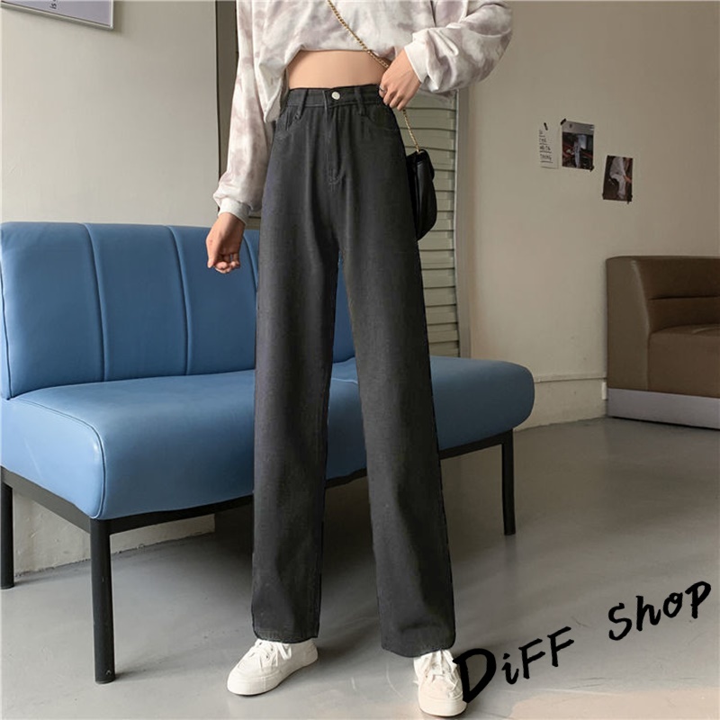 【DIFF】韓版寬鬆顯瘦高腰牛仔褲 寬褲 褲子 長褲 休閒褲 女裝【P102】