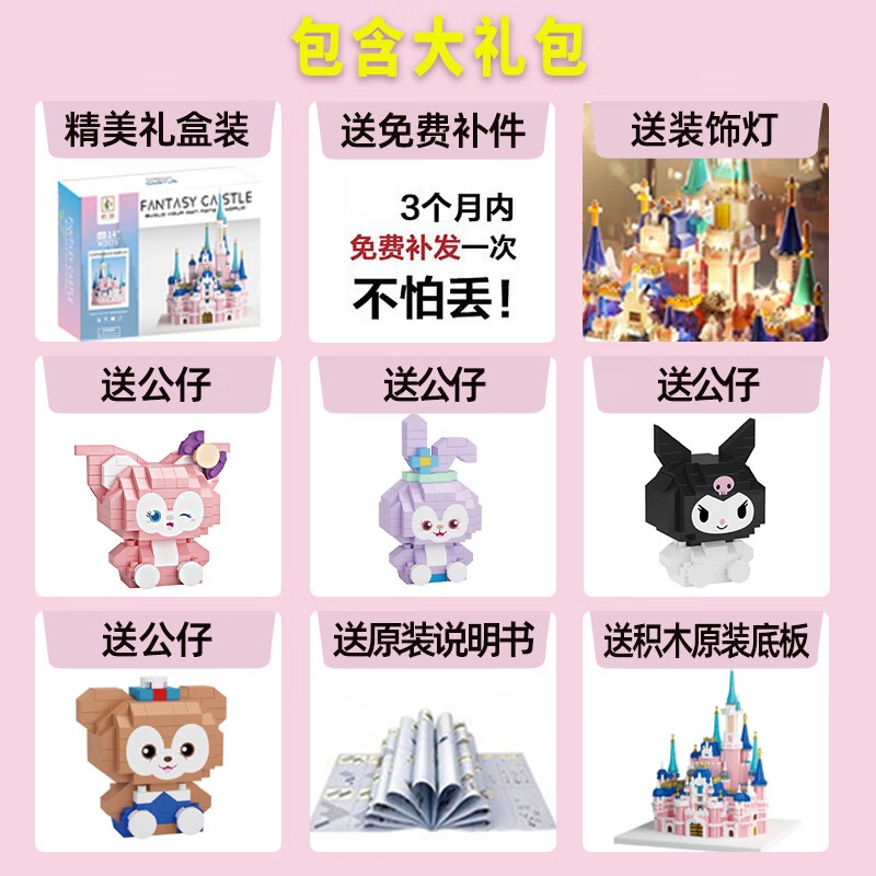 搭一手拼装积木迪士尼公主城堡女生拼图diy创意儿童玩具7-14岁生日礼物