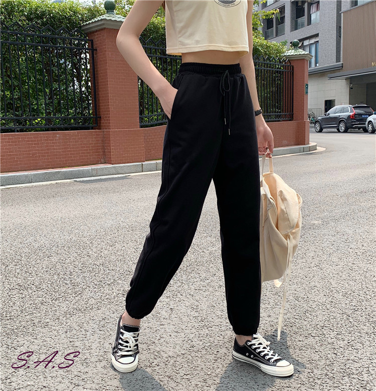 灰色哈倫棉褲 顯瘦高腰休閒褲 哈倫褲 棉褲 寬鬆百搭束腳運動褲 運動褲 休閒褲 長褲 高腰 顯瘦 SAS 【1231P】