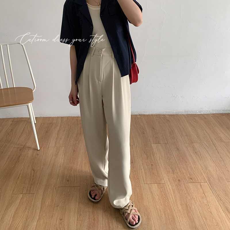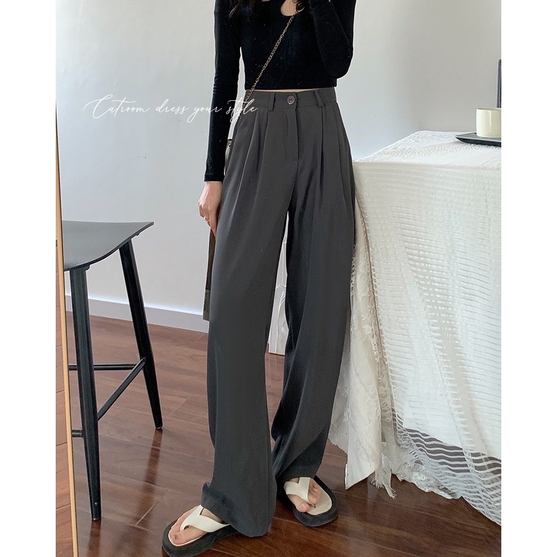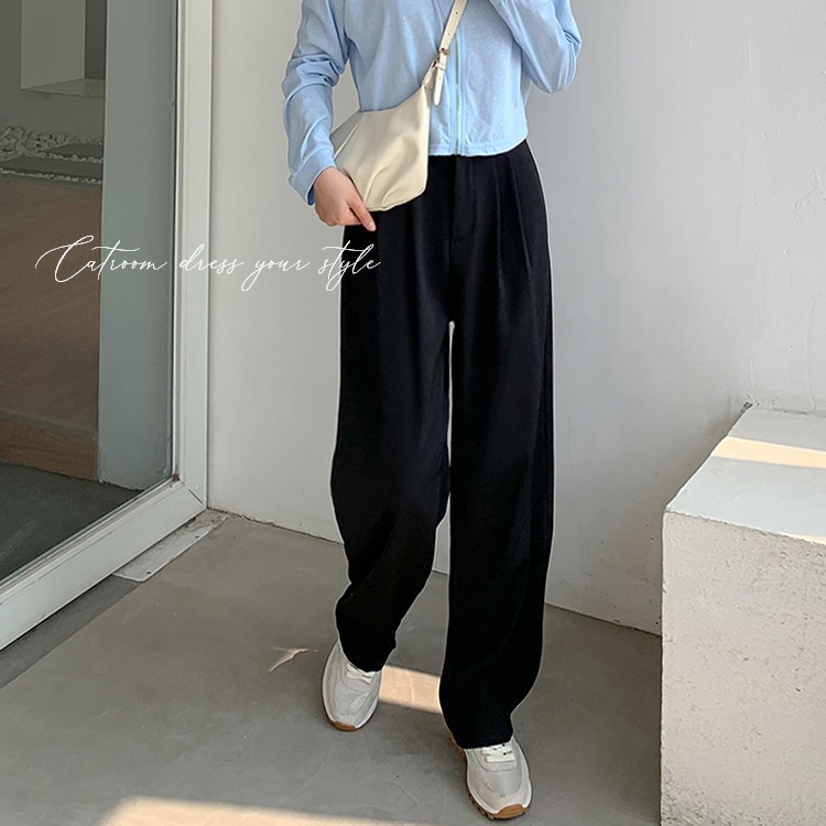 現+預【CATROOM】高CP值4色?顯腿長系列!高腰顯瘦 女生長褲 垂墜質感 壓褶寬褲 西裝落地褲闊腿褲高腰西裝褲