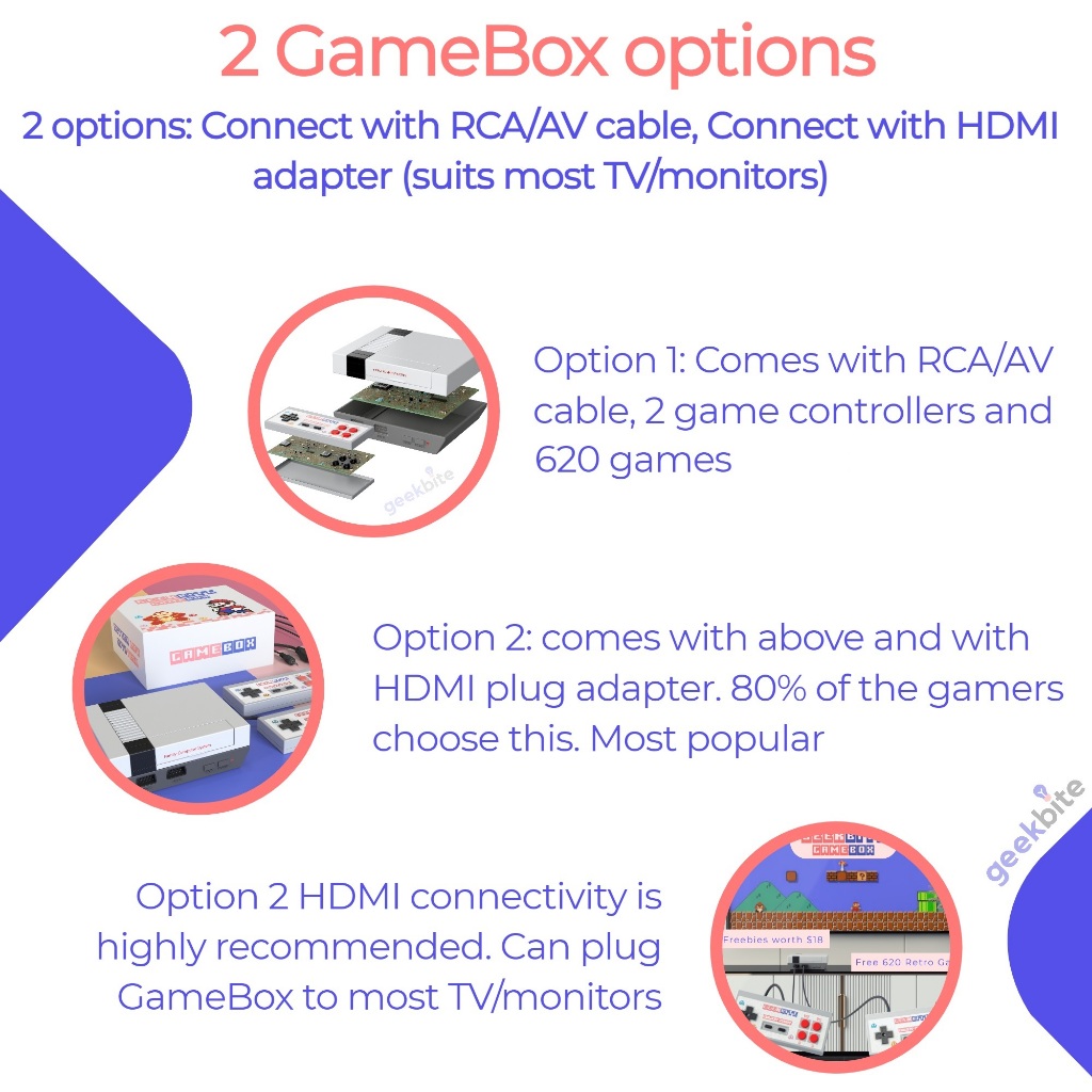 ✅ GeekBite GameBox USB Retro Game TV Console NES Classic (Latest SG popular Game Console)