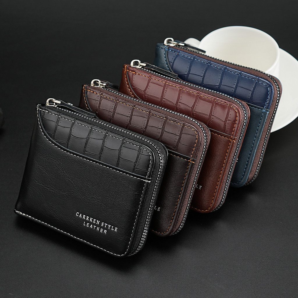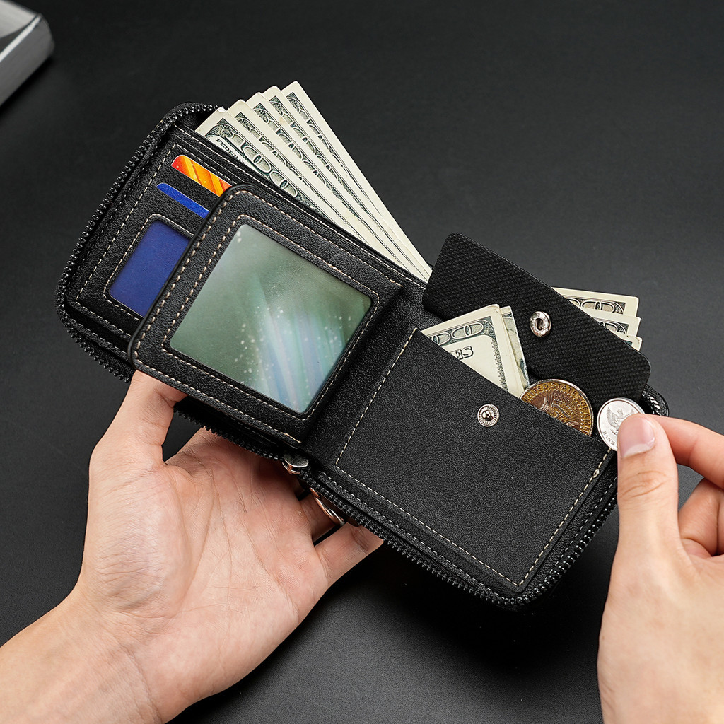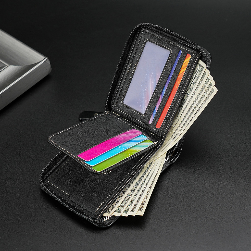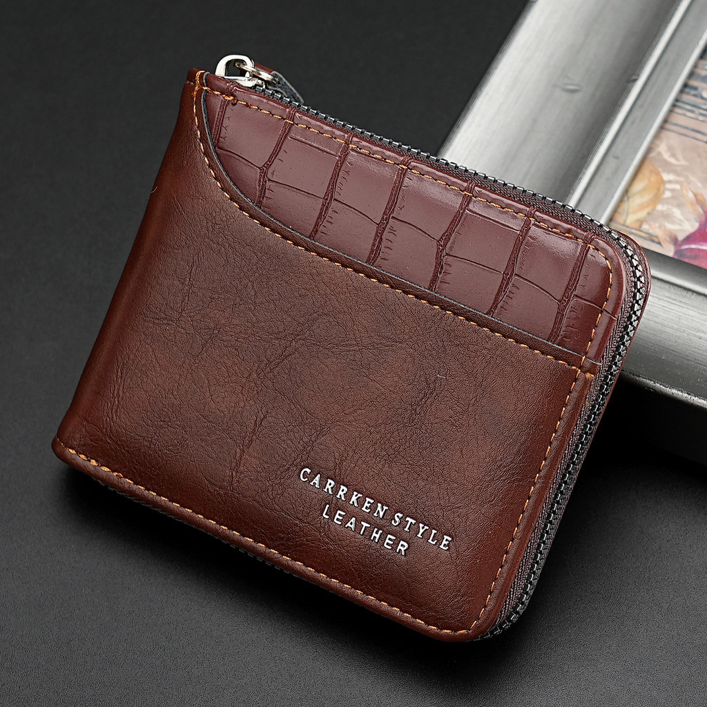 Men New Style Leather Zipper Short Wallet Multifunctional Coin Purse Multi-card ID Bag Card Holder