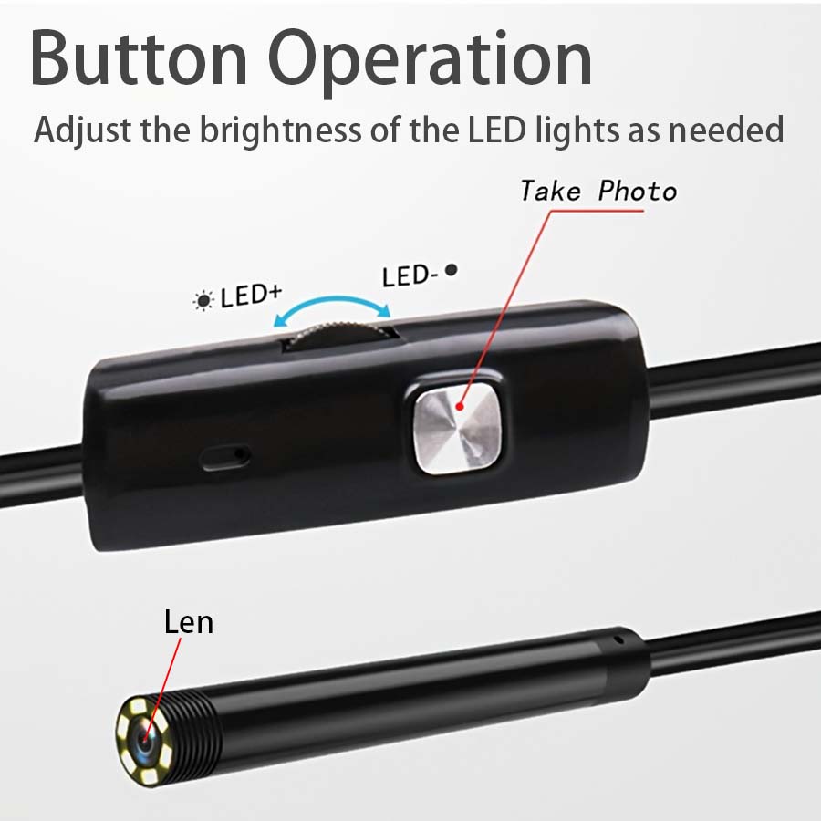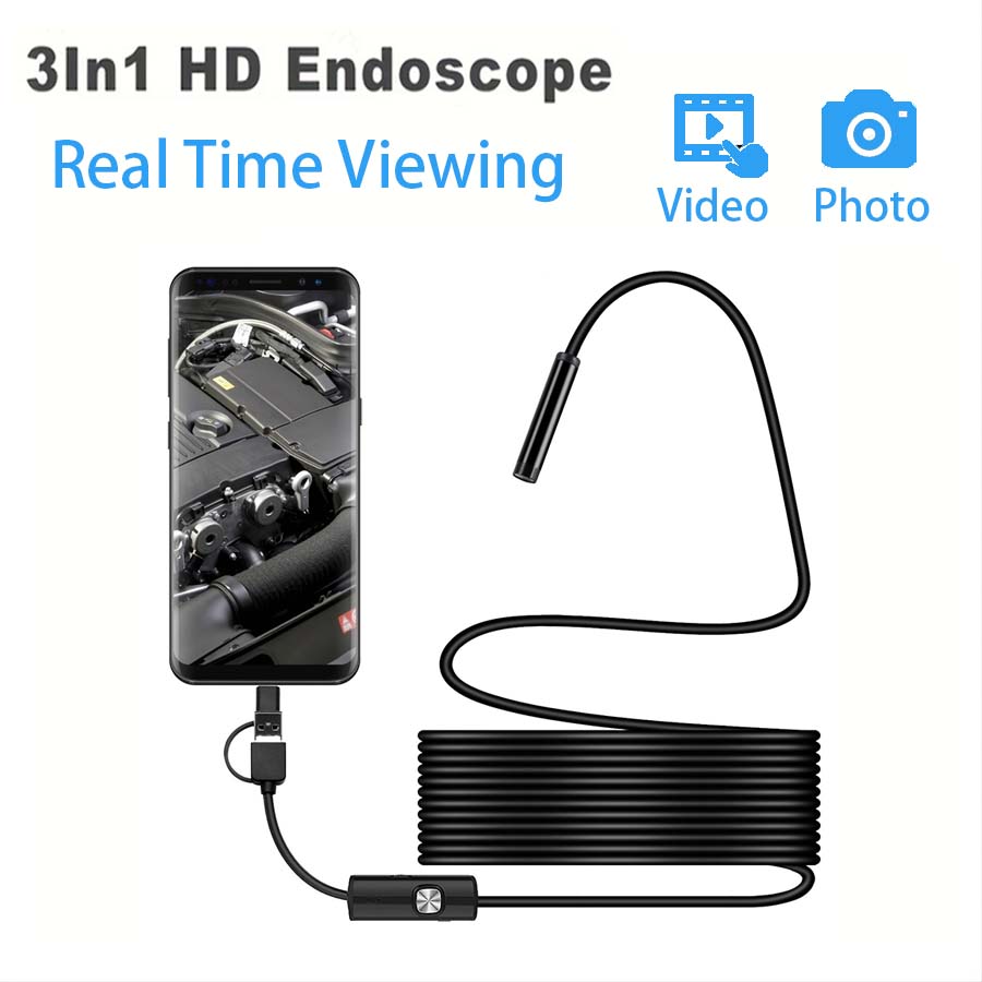 1pc 3 IN 1 Type-C Micro USB Endoscope Camera 0.3inch/7mm Waterproof Lens 6 LED Lights 6.6 Feet/2m Soft Hard Wire Pipe Suitable for Car Inspection, Air Conditioner Internal Inspection Industrial Pipe I