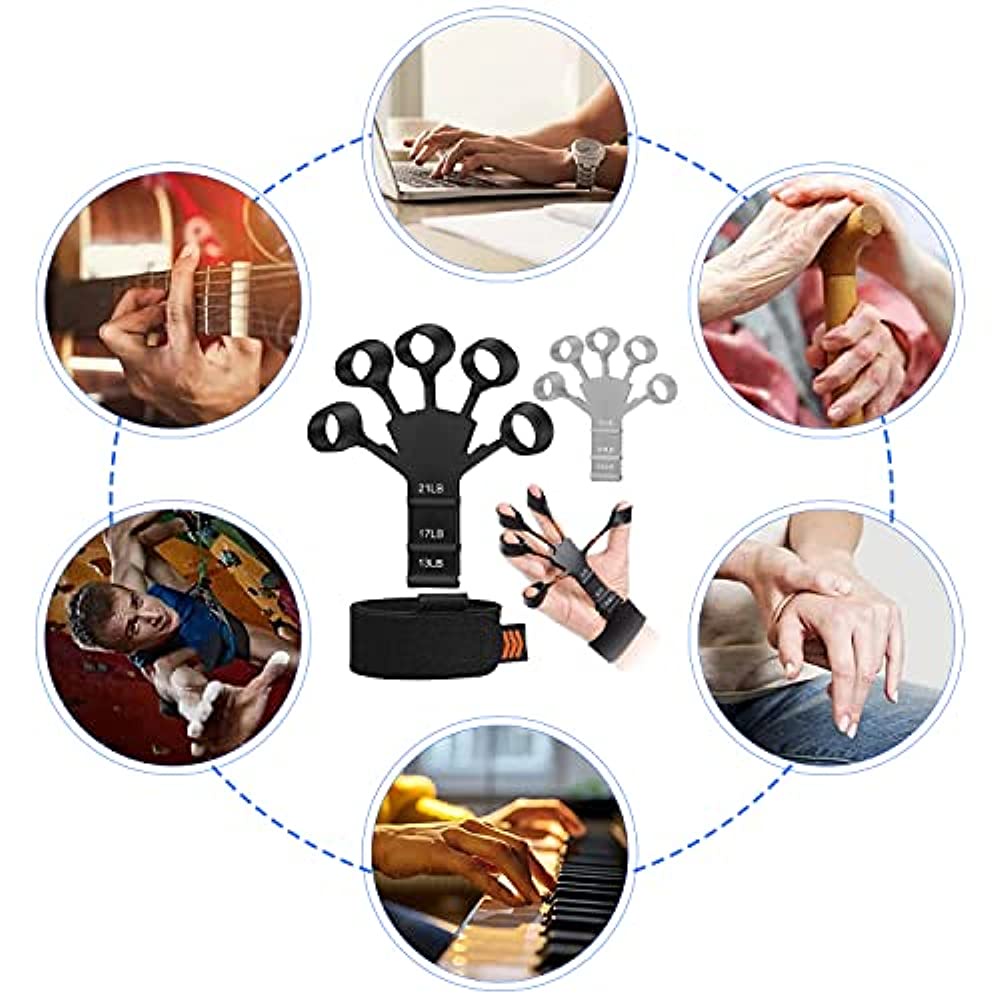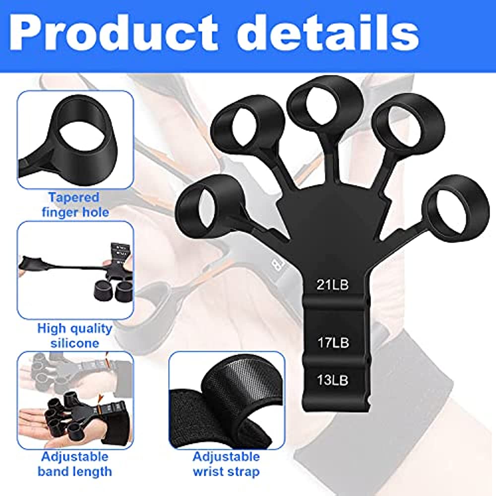 2 PCS Finger Gripper gripster Silicone Finger Exerciser Trainer with 6 Resistant Level For Guitar Player With Hand Wrist Band Strengthenergripster
