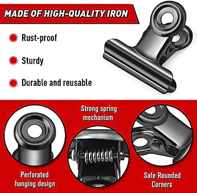 Practical Bulldog Clips: Best for organizing, managing, or displaying your photos, maps, signs, paper, recipes at home, office, or school.