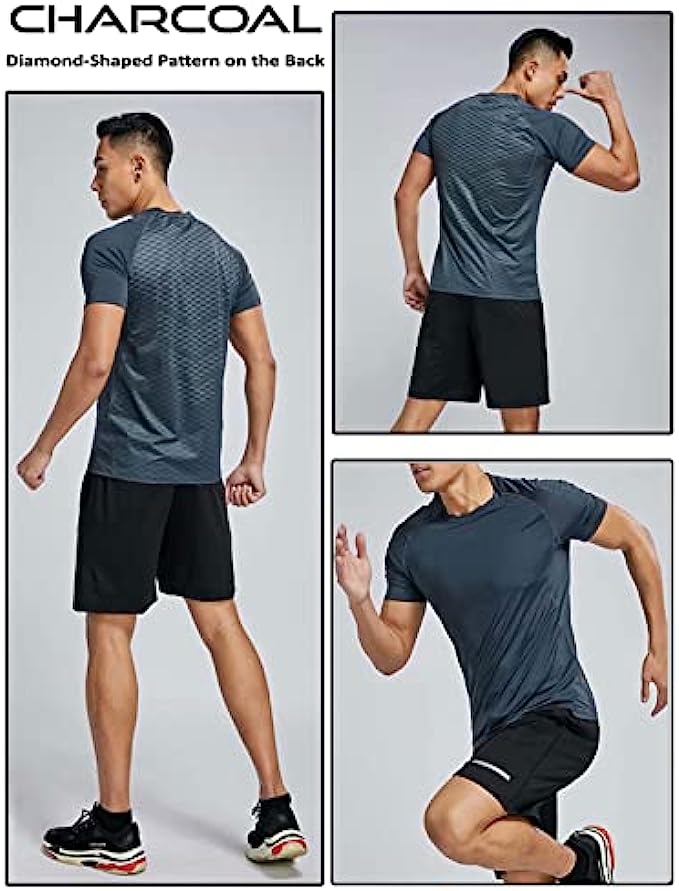 • VARIETY & VALUE - Set of 5 men's premium short sleeve t shirts in different colors and styles. Versatile athletic shirts for every man's wardrobe. Designs engineered for comfort and performance. Ideal wear for running, weight-training, bodybuilding, or even just everyday activities.