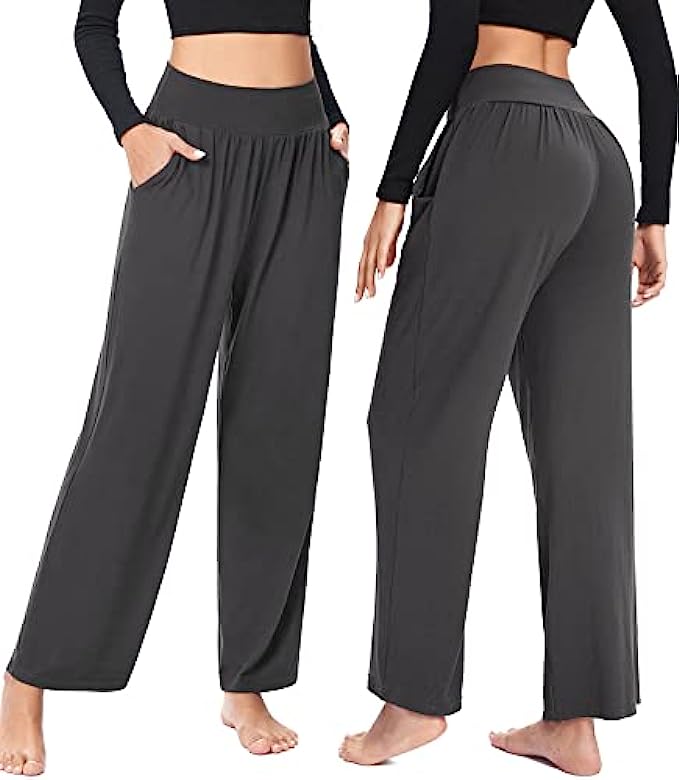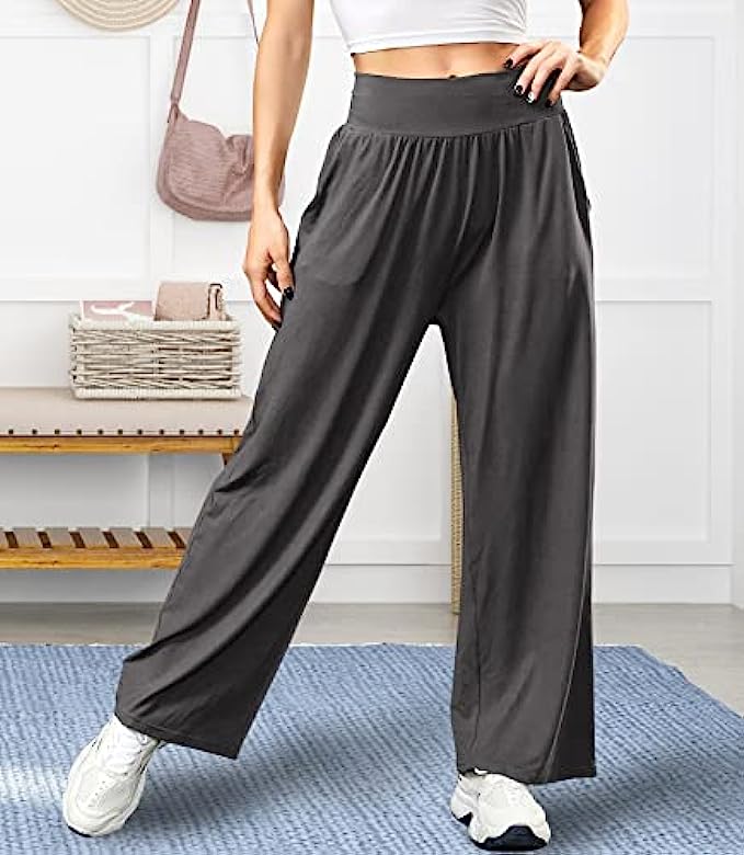 • ✅ ULTRA SOFT & LIGHTWEIGHT MATERIAL - The ASIMOON wide leg sweatpants women was made from 95% Polyester & 5% Spandex.The material has the same high spandex content that other womens loose yoga pants did and it's the perfect weight to not be see through but still light and breathable. These woman's comfy pants are buttery soft and have great stretch and movement. The loose fitting makes them really comfortable for using as high waisted lounge pants.