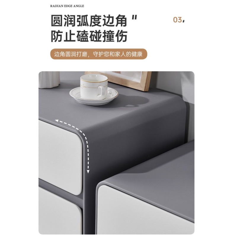 Bedside Table Minimalist Solid Wood Leather Sideboard Bedroom Three Layers No Installation Storage Cabinet (BI)