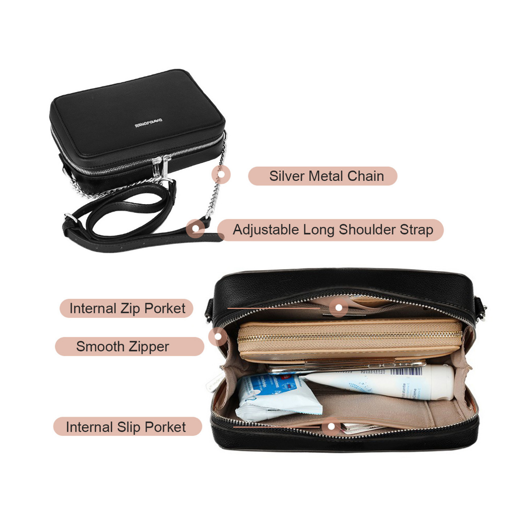 David Jones Paris women shoulder bag pu leather female crossbody bag chain small square bag