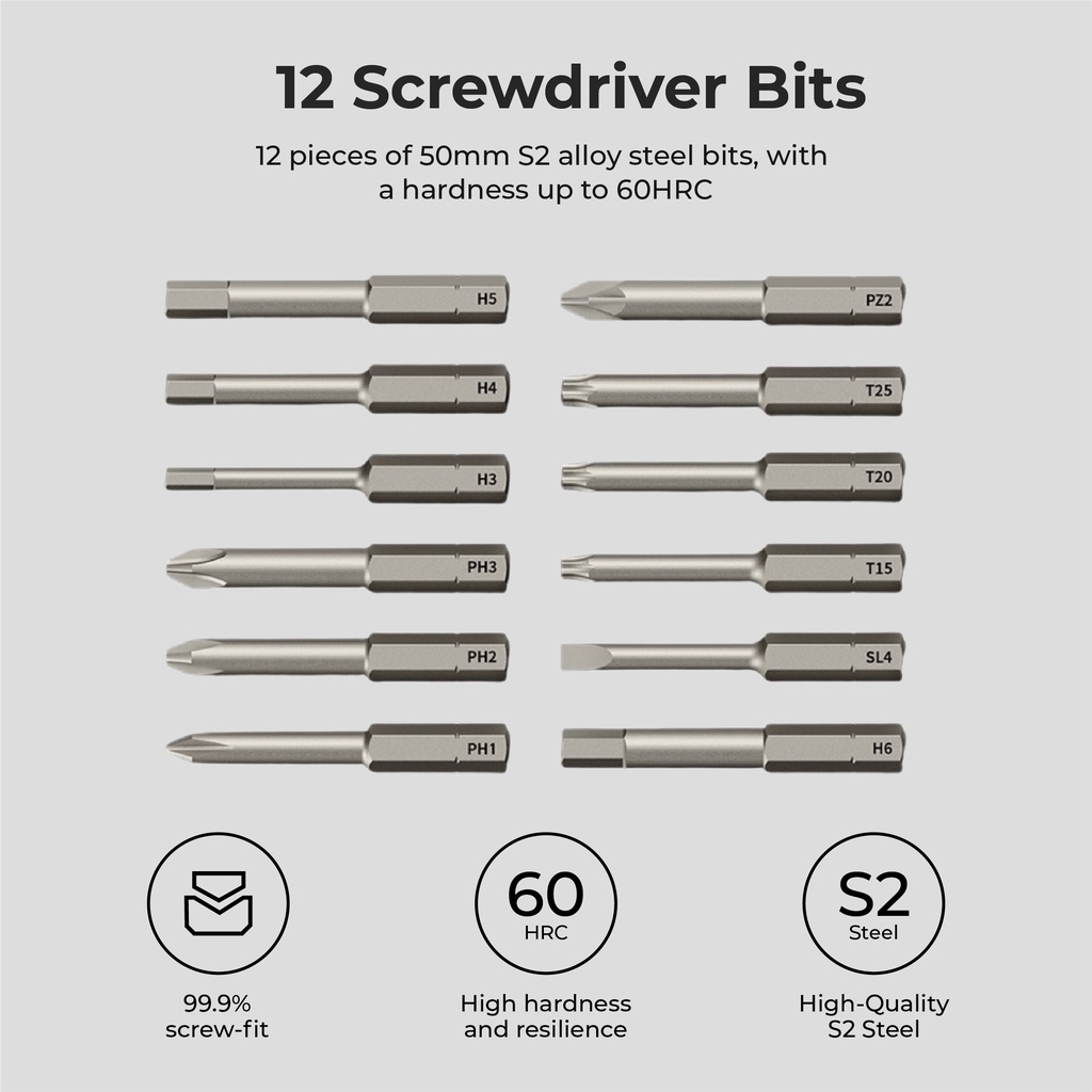HOTO Mini Electric Screwdriver 3.6V Type C 12 Bits LED Light 3 Torque Adjustment
