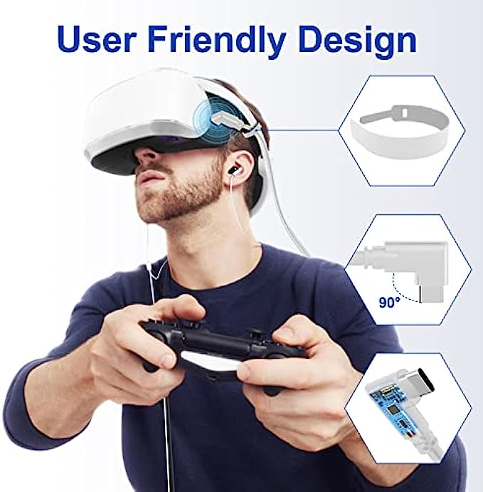 • 【For Oculus 2 Charging Cable 】90 Degree Angle cable link port L-shaped designed fits comfortably with your Quest VR headset,easy to hold and easy to use Quest VR headset and PC together, Included straps secure cables and Quest to prevent disconnection while moving.
