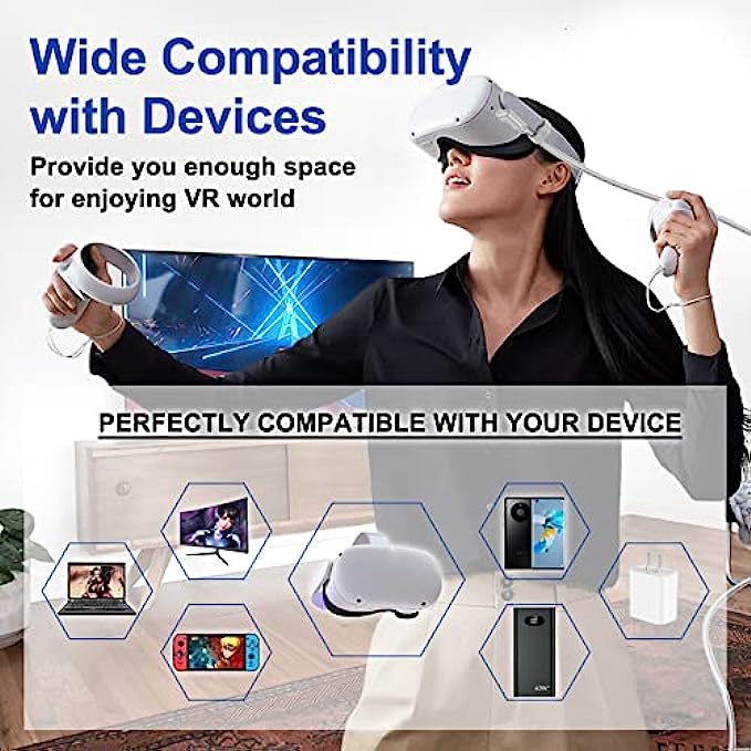 • 【Cord for PC to Connect Meta/Oculus Quest 】BSTKEECL high quality long VR cables design length up to 16FT(5m),which making you connect the headset and play computer games easily ,and having an immersive gaming experience .Thus you must not be worry about the dragging the limited cable.