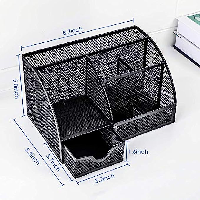 • ✏DESK ORGANIZER FOR ANYWHERE: Mesh desktop organizer is suitable for home, office, work, school, classroom, workshop, studio etc; Nice on desktop, school desk, bedroom dresser, coffee table, shelf, in a college dorm room, living room; This great organizer fit for wherever you need.