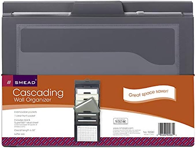 Smead Cascading Wall Organizer, 6 Pockets, Letter Size, Gray/Neutral Pockets (92061)