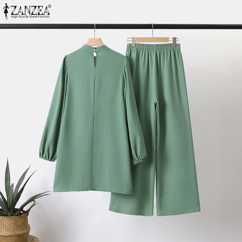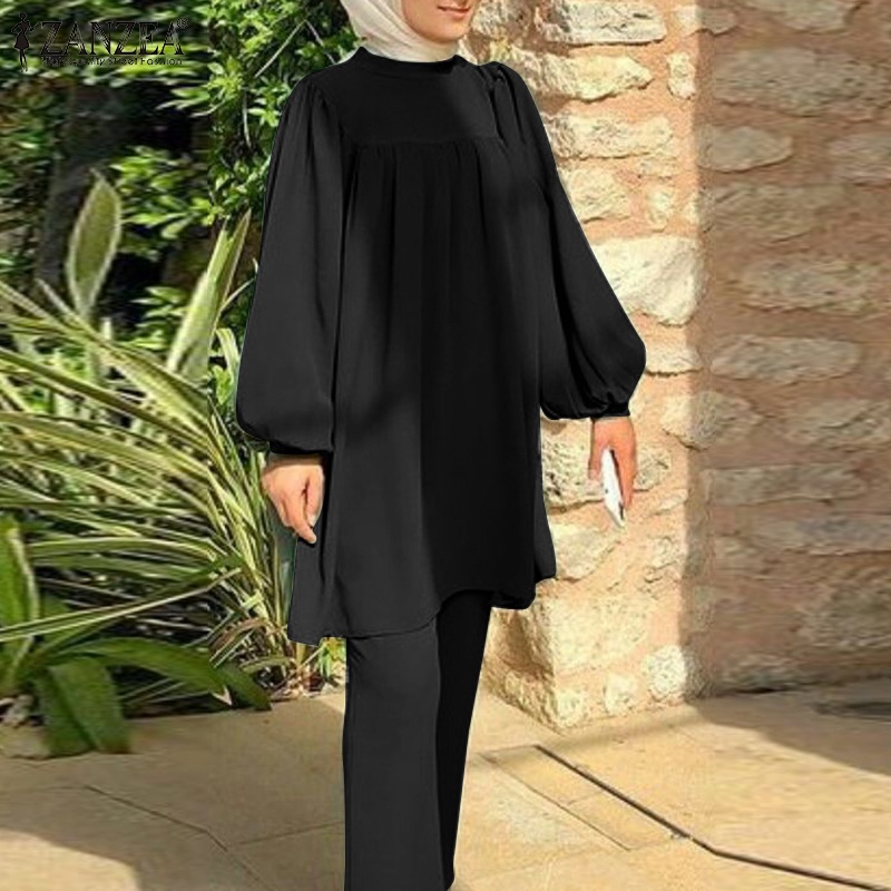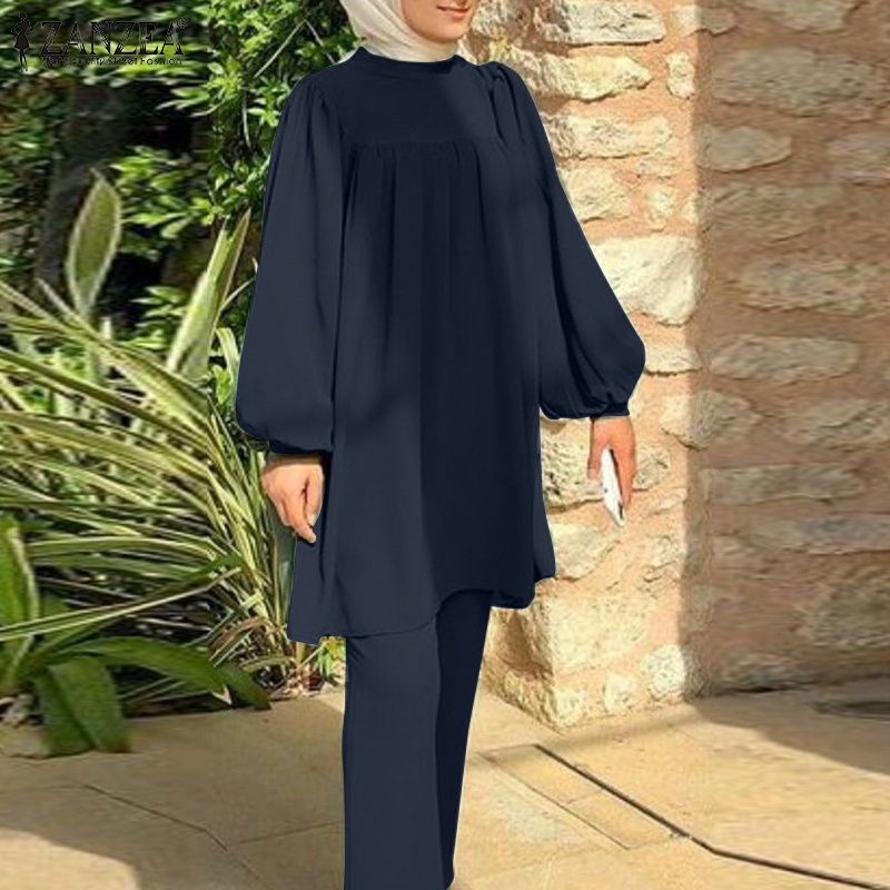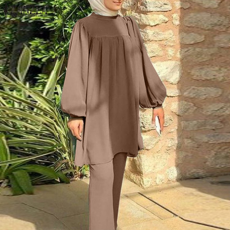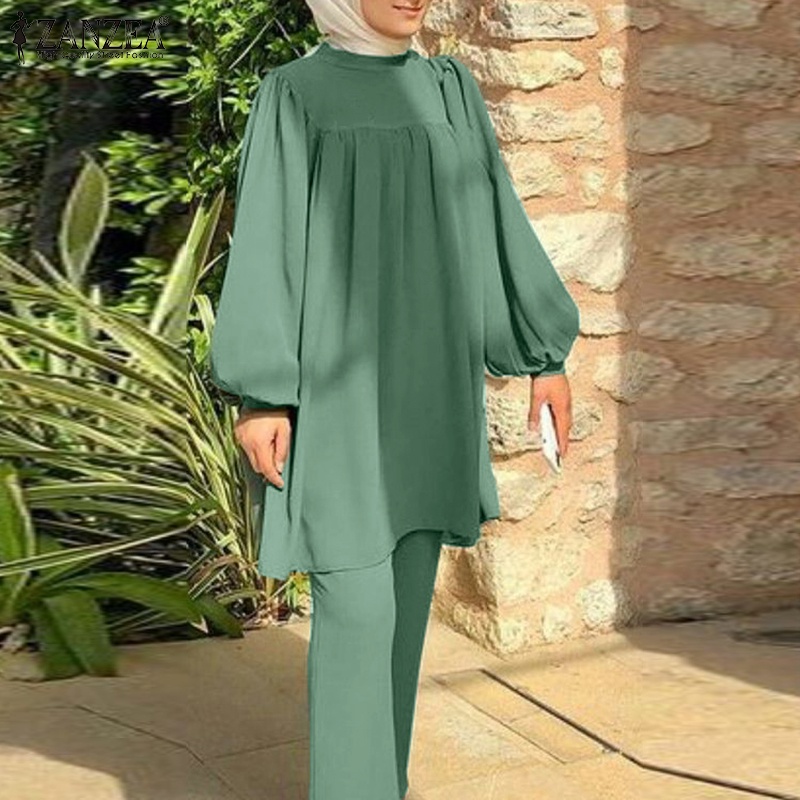 ZANZEA Women Muslim Casual Loose Long Sleeves Blouse+ Elastic Waist Pants Sets