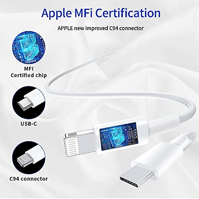 • 【Apple Mfi Certified】 Made with original Apple Chip, Ximytec type C to Lightning cables full support with iOS versions and all future updates. They adopt the latest and faster charging C94 lightning terminal design,and built-in overvoltage protection ensure your Apple devices are charged safely, at their fastest possible speed.