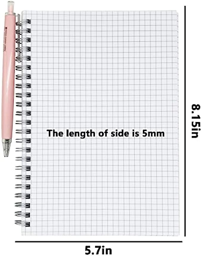 【4 Pack Square Grid Notebooks】5.7x8.1 inch (A5 size), 80 sheets (160 pages) per pack. Total 640 writing pages!