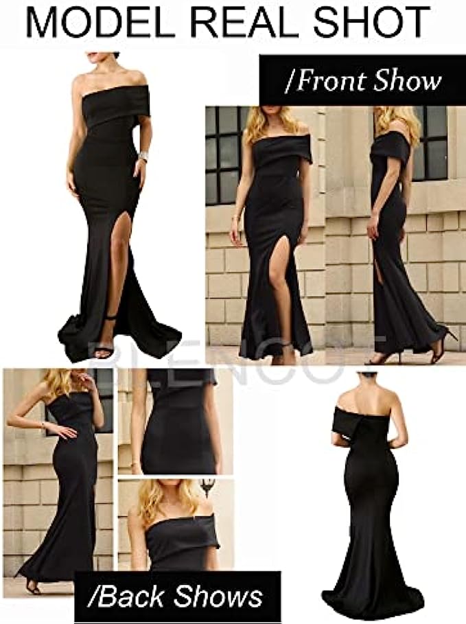 BLENCOT Womens Off The Shoulder Party Dresses One Sleeve Slit Maxi Bodycon Prom Dress Evening Cocktail Long Dress