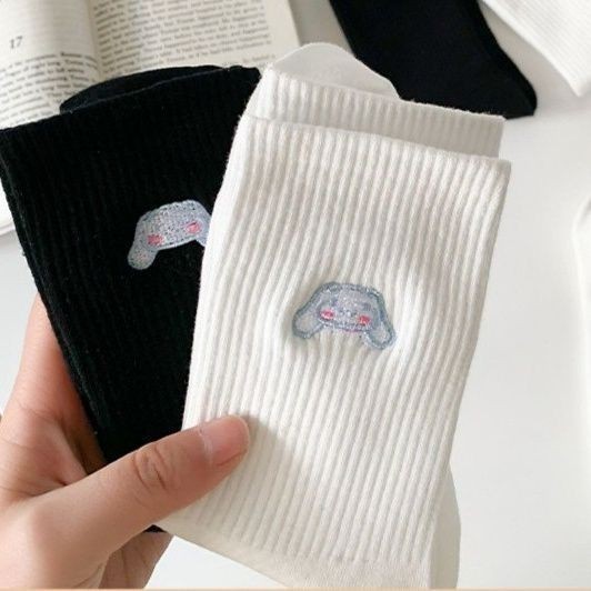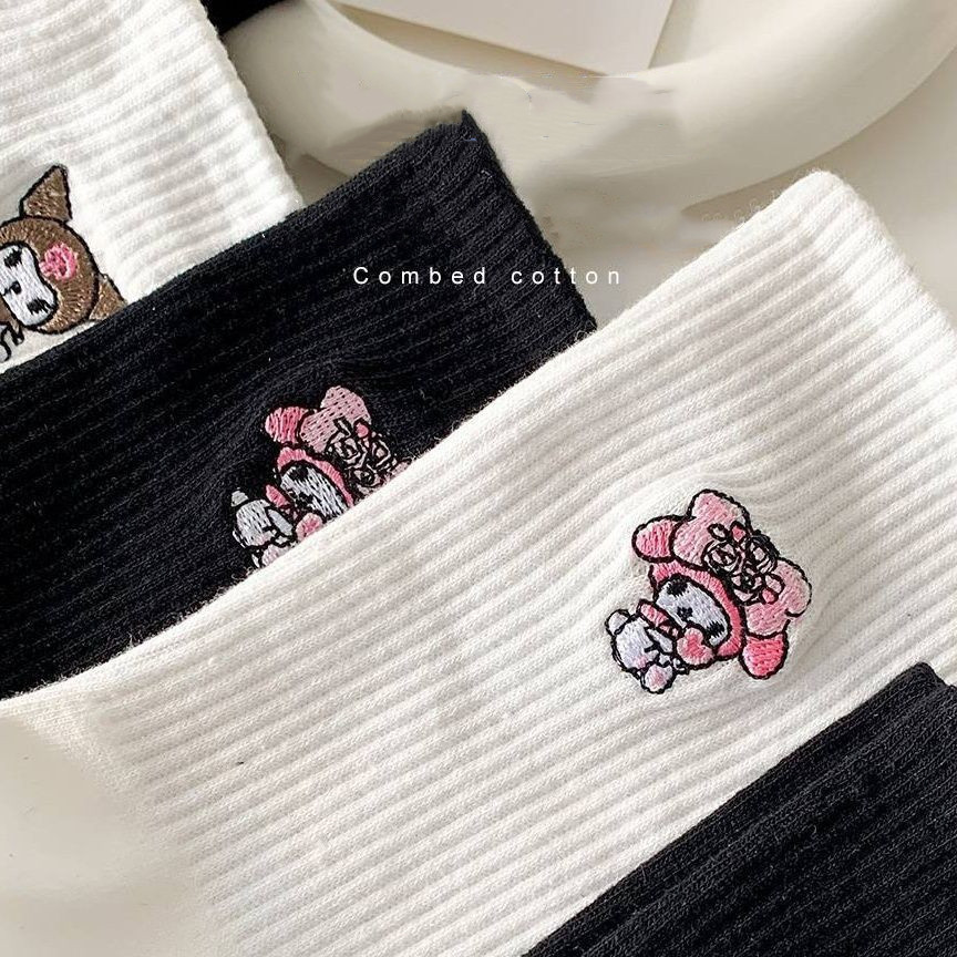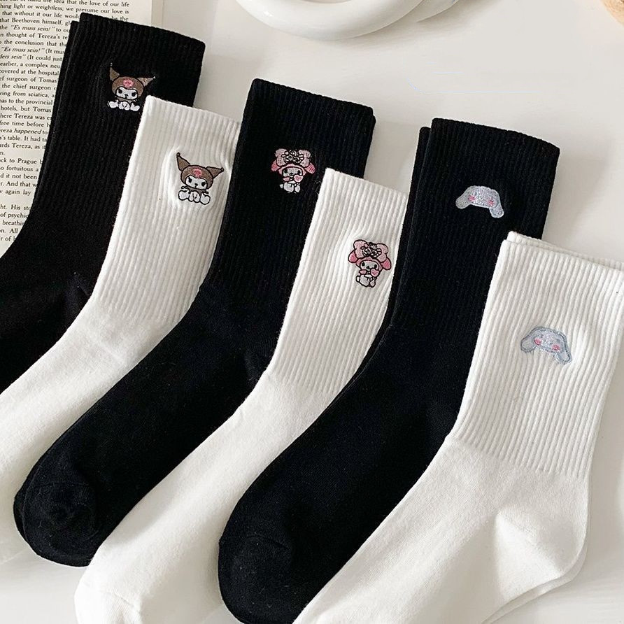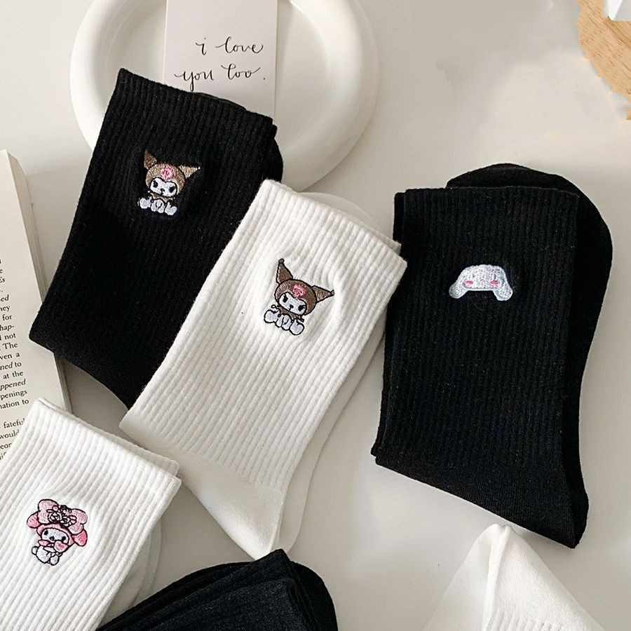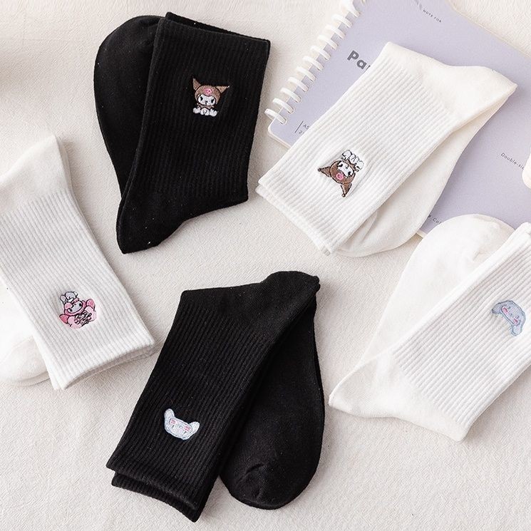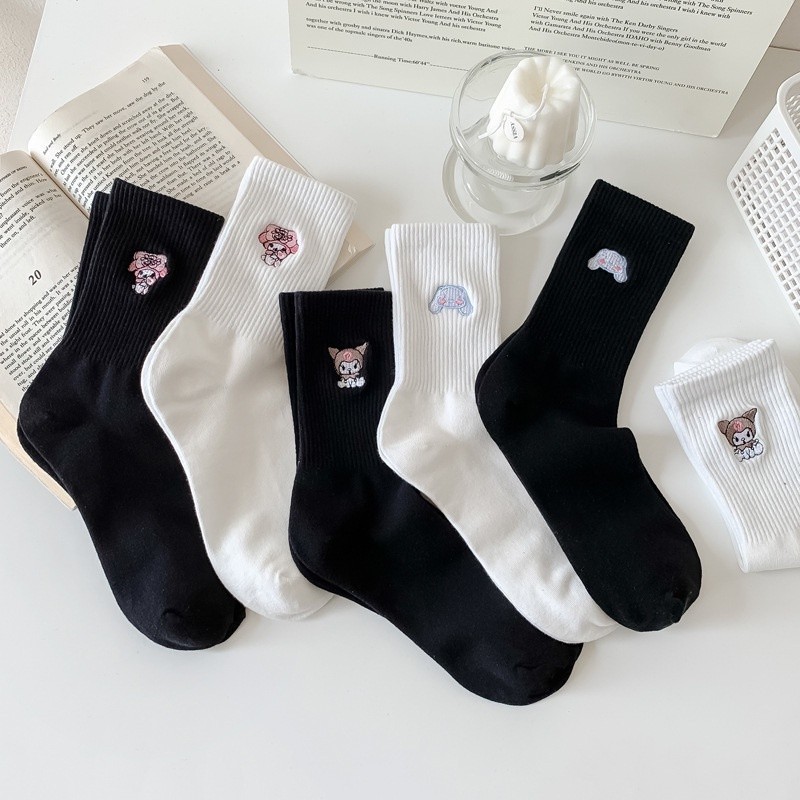 Cute Sanrio Black White Mid Tube Socks Japanese Cinnamoroll Kuromi My Melody Cotton Socks for Girls Women
