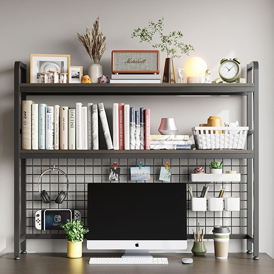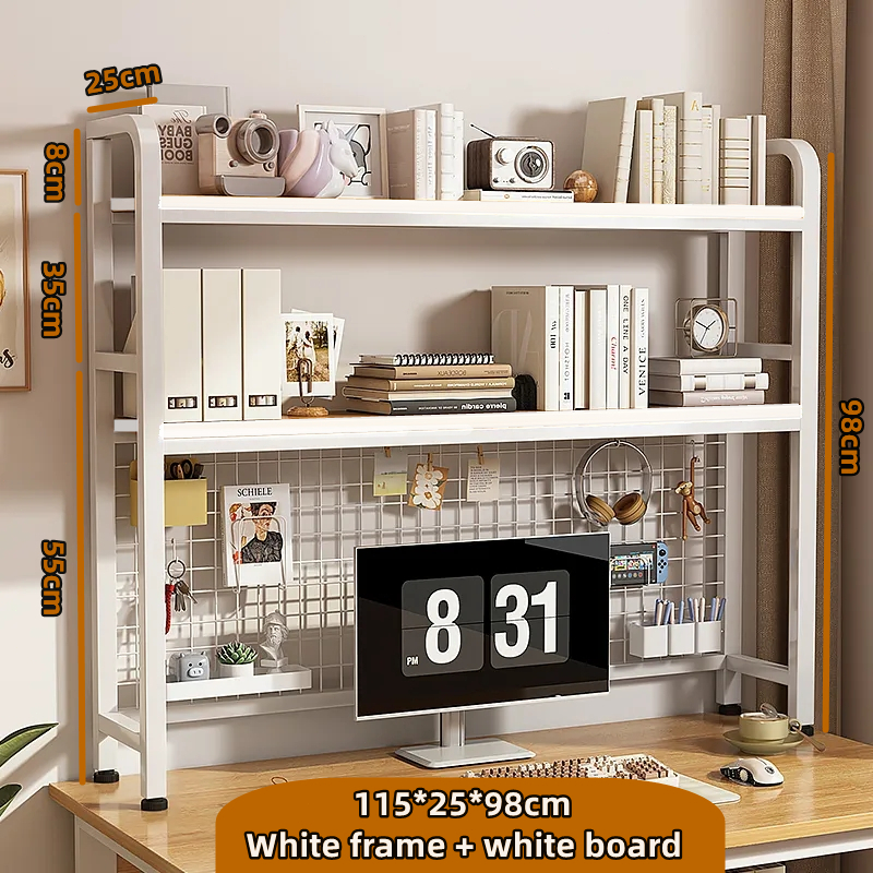 Desk shelf Wire Mesh Grid Double Layer Wooden desktop shelf Bookshelf simple student dormitory office desk storage rack