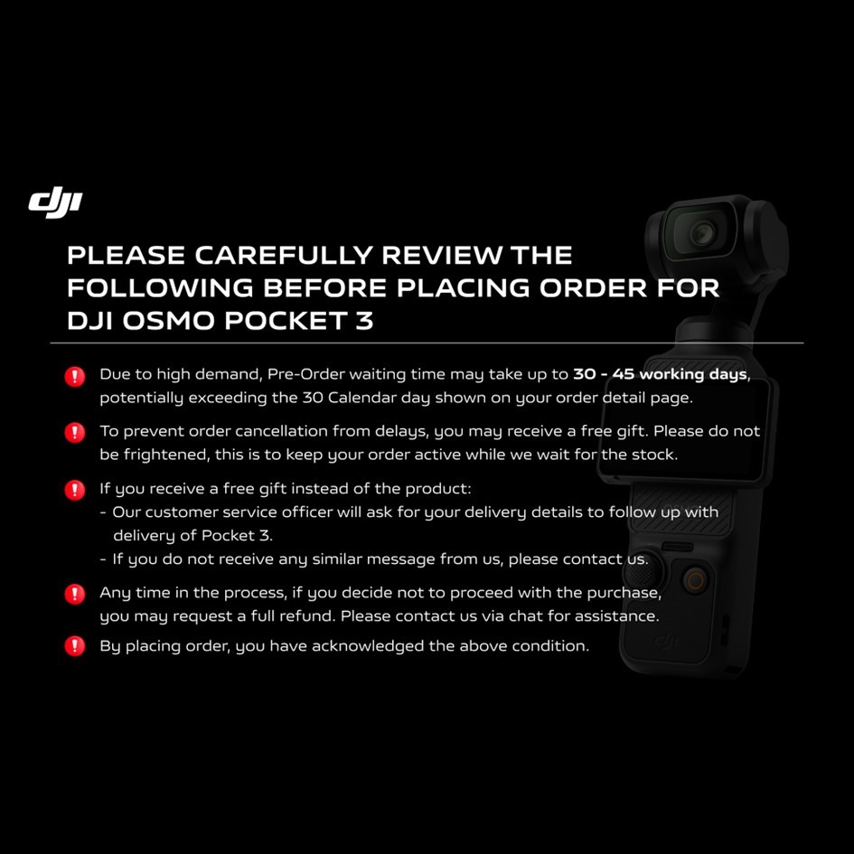 Value For Money:Good Best Feature(s):Gimbal Performance:Good Bought on 26 Oct, only received on 4 Nov. Was informed that it was due to stock issues only when I asked. Didn't receive any free sd card that others seemed to have gotten. Luckily I bought my own 512gb samsung sd card that currently seems to be working fine.