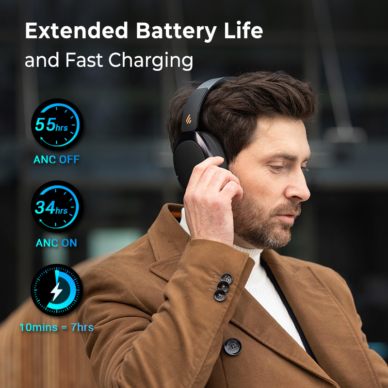 Edifier WH950NB Wireless Bluetooth Noise Cancelling Headphones Hi-Res Audio 4-Mic ENC Bluetooth V5.3 40mm Type-C Fast Charge Hybrid ANC Dual Device Connect Noise Cancellation