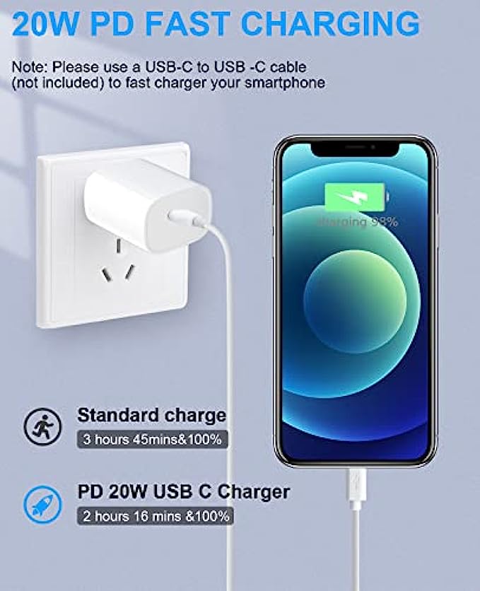 • 【3X Fast Charger iPhone】20W USB C iPhone fast charger with 10ft USB C to lightning cord, PD 3.0 quickly charge USB C port provides 3x faster charging speed than original 5W iphone chargers do. It can charge iPhone 13, iPhone 12 up to 50% in just 30 minutes which saves more time for you.