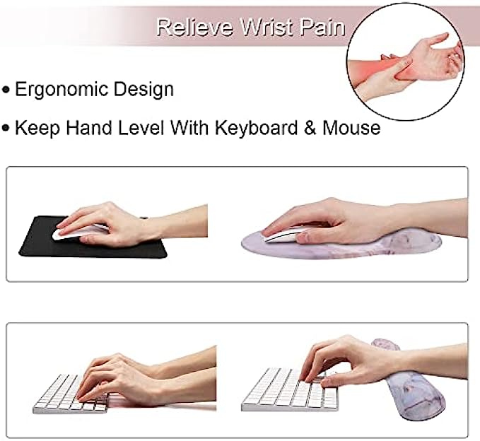 Ergonomic Design: The ergonomic mouse pad set is perfectly curved for your wrist and hand, provide soft support to relieve the pressure, fatigue and pain of your wrist. Effectively avoid damage and other wrist problems caused by friction between the wrist and the desktop.