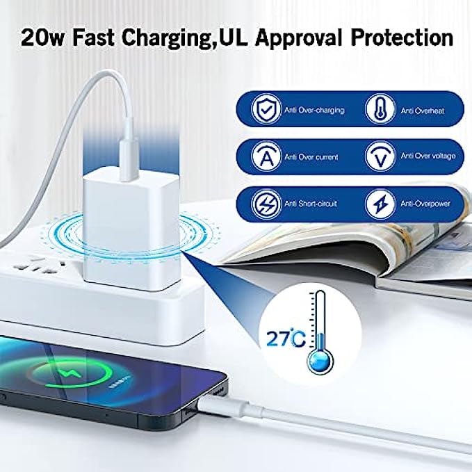 • 【Safe Charging】UL-certified iPhone fast Charger with Built-in protetion mechanism works intelligently to protect your iPhone/tablet/iPad/AirPods from overheating, over charging, over-current and over-voltage.FITINFUSER