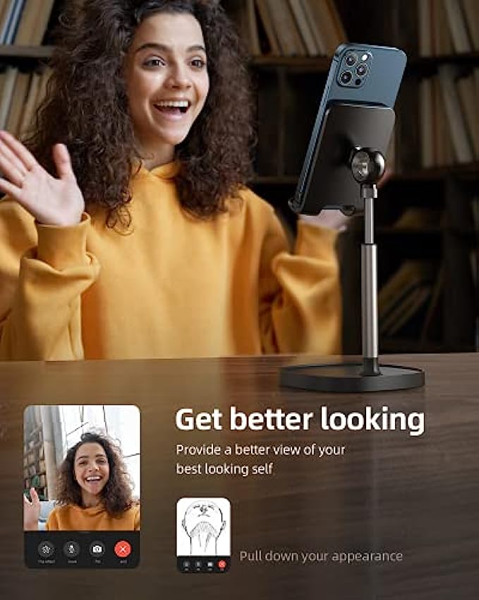 TALLER AND MORE PHOTOGENIC STAND, HELP TO CORRECT THE "TEXT NECK": This cell phone stand holder is in accordance with ergonomic design. Providing you comfortable viewing angle which helps to fix your posture and reduce neck & back strain. The height can be easily adjusted between 7.1in-8.5in(1.4in adjustable range), the angle is adjustable between 5°~85° USER-FRIENDLY DESIGN: [No bent & tangling & tip over worries] when using while charging. Due to bent cable, the low phone dock maybe fall over. LISEN stylish adjustable phone holder for desk has a reserved charging hole design, supports cable management, [No bent & tangling & tip over worries]. This phone pad will not cover the subtitle when you watch the video WEIGHTED ANTI-SLIP BASE: This cell phone stand for desk is equipped with a weighted base and an aluminum alloy rod. Therefore, this iPhone stand holder is stable enough to support all smartphones or small tablets, such as 2021 iPad Mini, iPhone 13 Pro/13 Mini/12/12 Pro/12 Pro Max/12 Mini/iPhone 11/11 Pro/Max/X/MAX/XR/8/8P, Samsung Galaxy S21, S20, Note 10/9/8/Plus, S10/S9/S8, Kindel, Switch, iPad Mini,iPad Air, etc.We recommend the most stable compatible device size is 4-10 inchs ANTI-SLIP DESIGN: The pad back and the bottom of this cell phone stand are fully covered by anti-skid silicone, which LISEN iPad stand holder can provide maximum protection for your device from any scratches and slides, grips friendly ❤️WE CARE ABOUT YOU❤️: If the product arrives broken, or get broken within 365 days, please directly contact LISEN for satisfied solution. Any other problem like could not tighten the screw, please also contact us. We sincerely care about every customer's shopping experience! (Product including: phone stand*1, screw*1, hexagon screwdriver*1, specification*1)