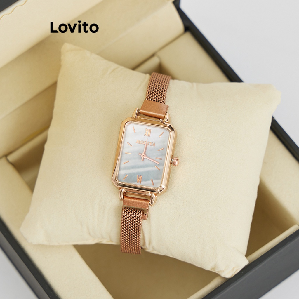 Lovito Casual Plain Basic Quartz Watche for Women L69AD054 (Gold)