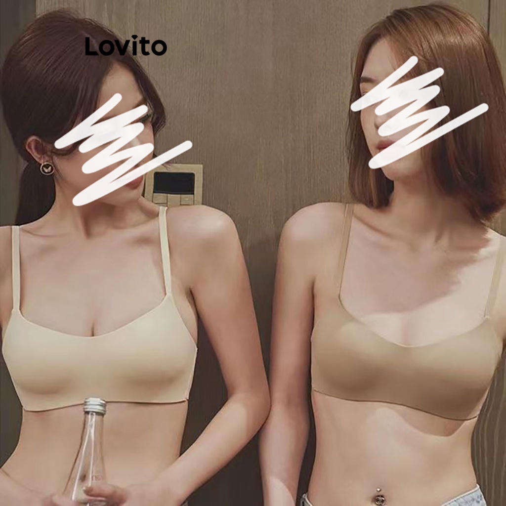 Lovito Casual Plain Structure Line Elastic Waisted Bra for Women LNE31266 (Apricot/Brown/White/Black)