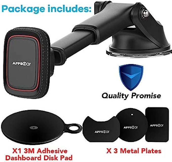 Magnetic Phone Car Mount,APPS2Car Universal Dashboard Windshield Industrial-Strength Suction Cup Car Phone Mount Holder with Adjustable Telescopic Arm,6 Strong Magnets,for All Cell Phones