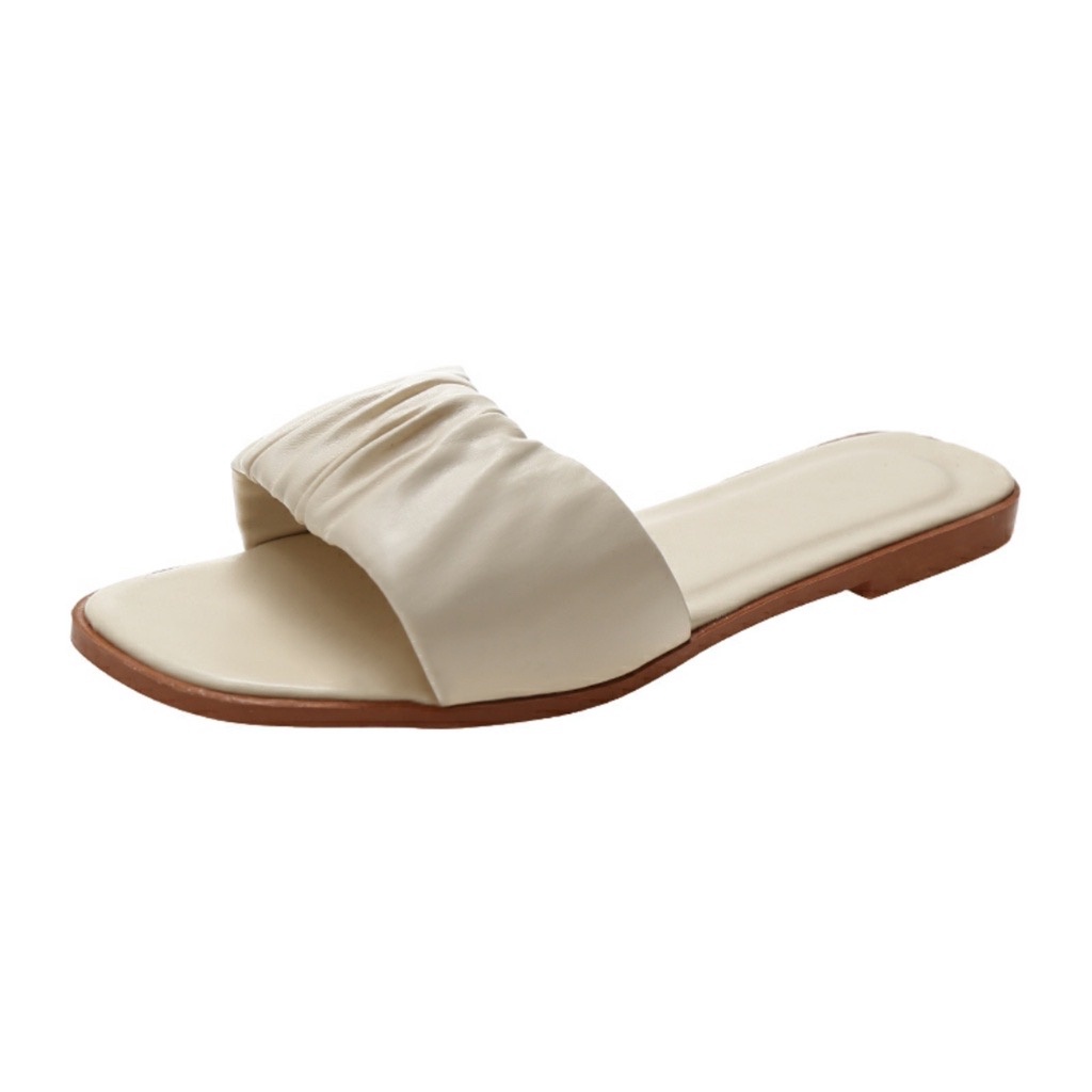 Material Quality:good Colour:cream The design is simple and take it as flip flop slipper. It looks nice too. The size is right for me. I bought size 41 and fitted well.