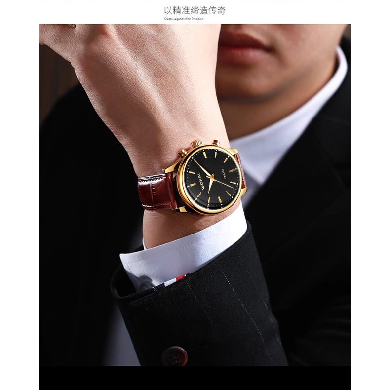 POSHI Men's Watch Leather Business Sport Waterproof Quartz Analog Watch jam tangan lelaki with box man's