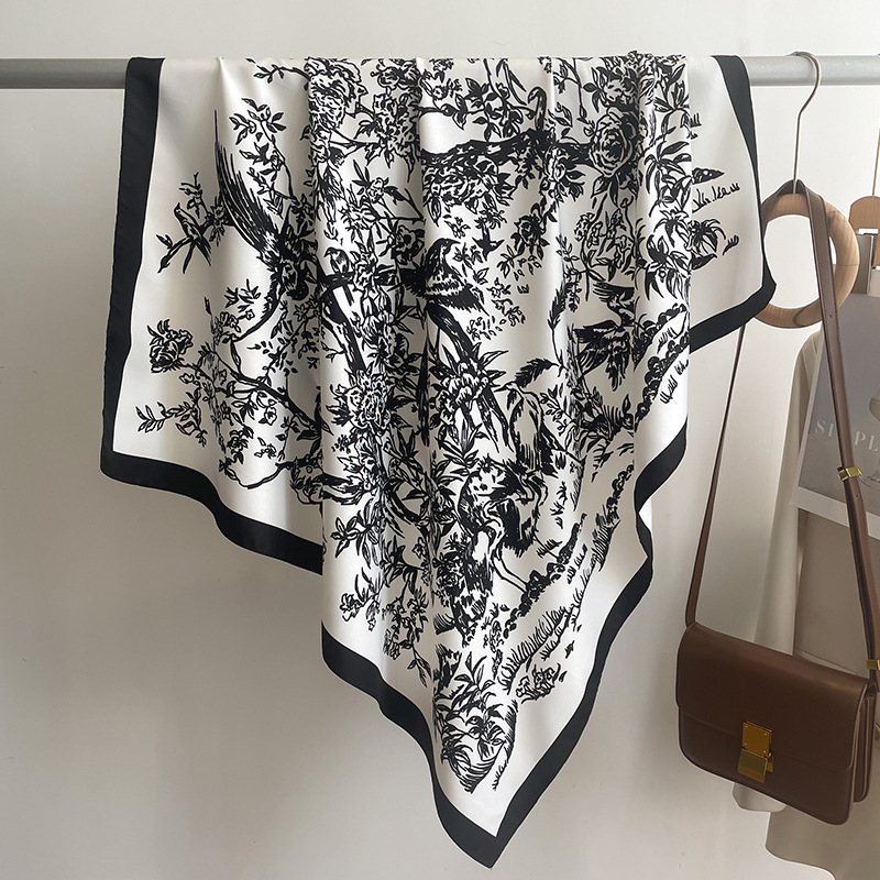 New Design Fashion Design Decoration Hijab Women Floral Printed 90cm Square Twill Scarf