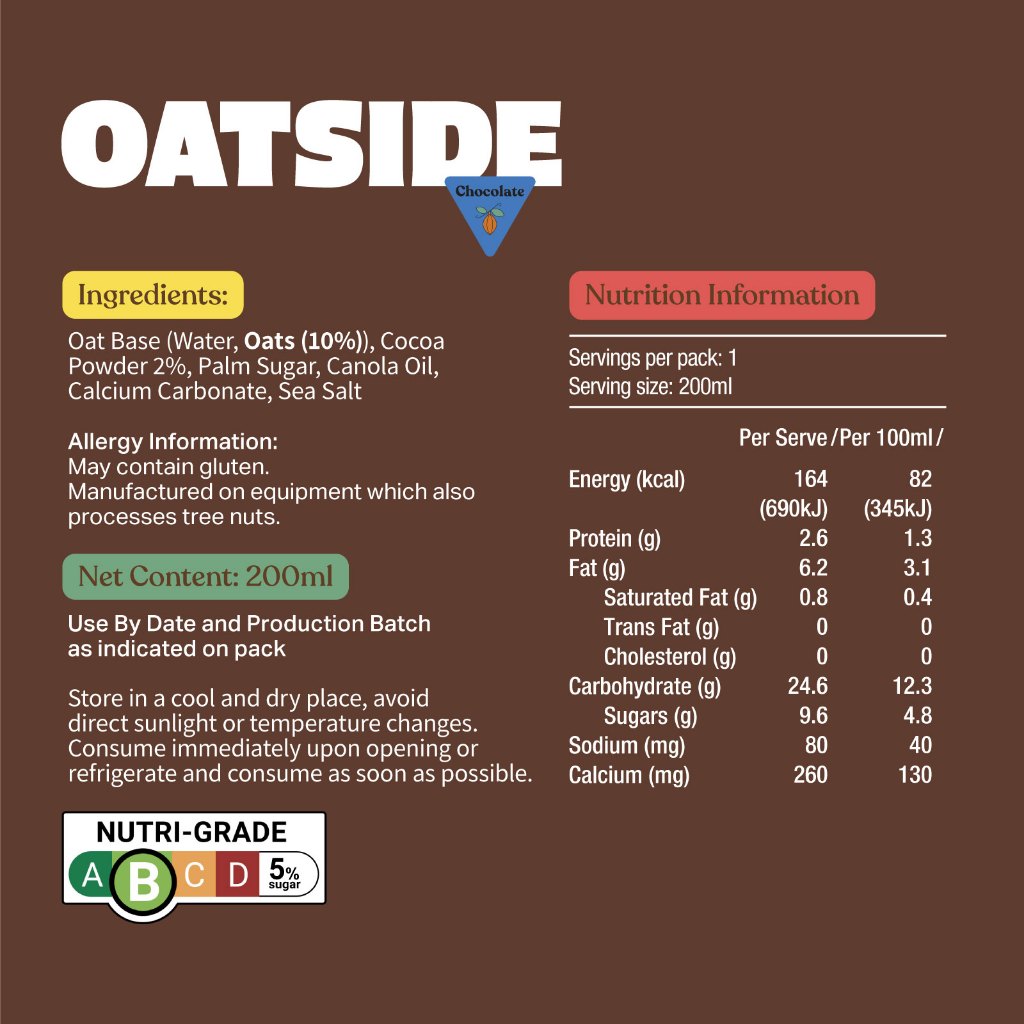 OATSIDE Chocolate Oat Milk 24x200ml w straw- Dairy Free, Rich, Made with Real Cacao