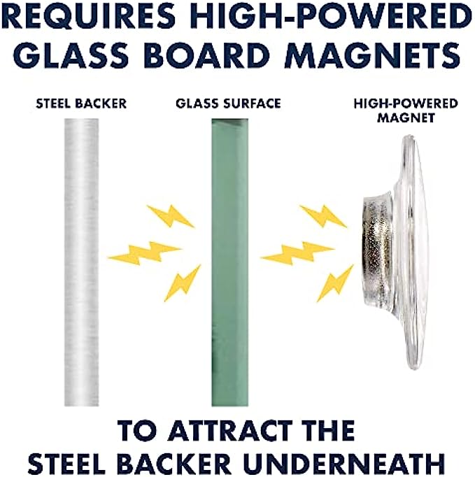 MAGNETIC POSTING – Multifunctional steel-backed magnetic glass is great for meetings and presentations. Easily hang papers and documents instantly with the included high-powered glass board magnets.