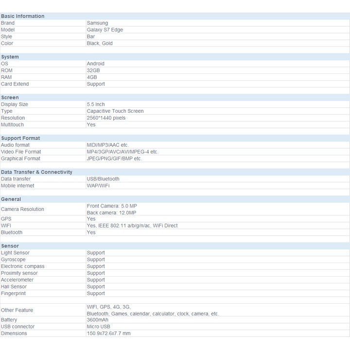 Samsung Galaxy S7 Edge G935 4G LTE 5.5" 4GB RAM 32GB ROM 12MP Front 5MP Rear Smart Phone One Piece (Please see options)