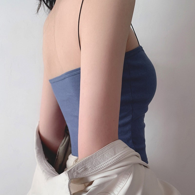 Sexy Women Thin Strap Sling Tank Top Solid Color Breathable Chest Pad Underwear Beauty Back Comfortable Tube Top