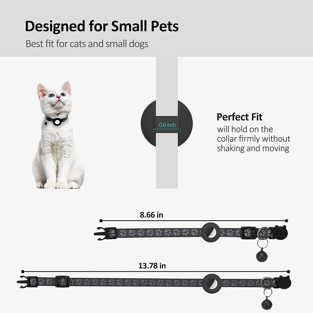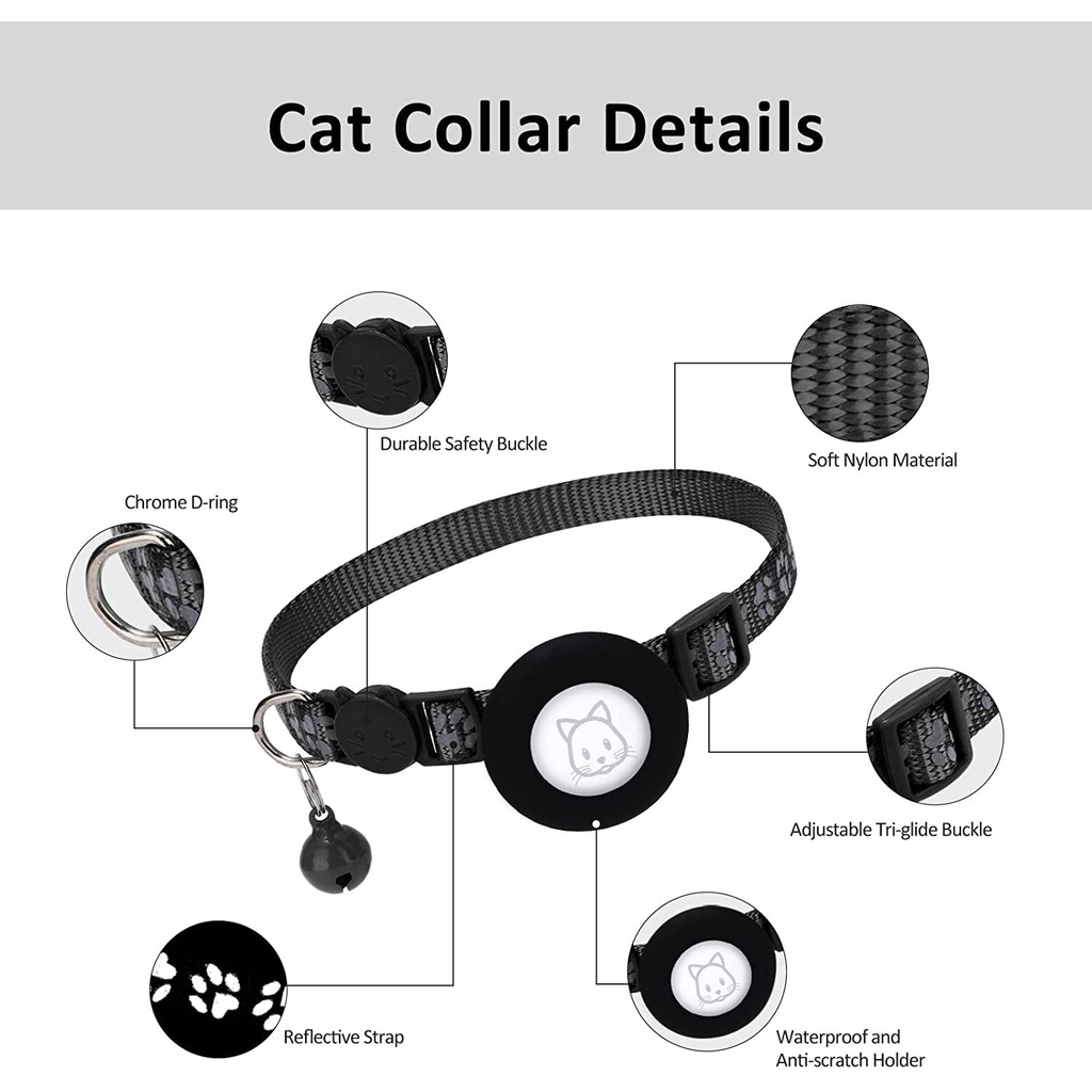 SG Shipment Cat Collar, Reflective Bell and Silicone Waterproof Airtag Holder Case Compatible with Apple , Breakaway Safety Buckle Collar for Kitten Puppy