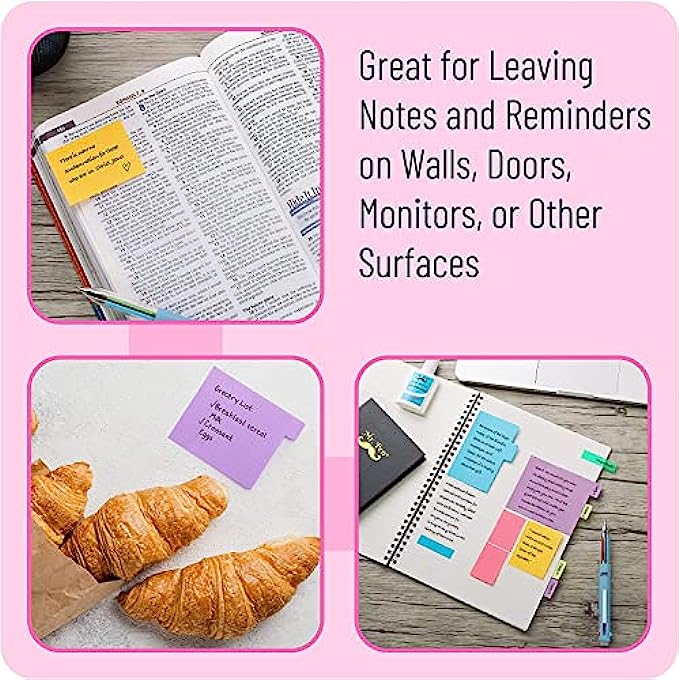 • 【Adhesives & Remove】The stick notes tabs are sticky, perfectly pasted on paper, walls, displays, bulletin boards,Removable you can take them off without ripping the paper.