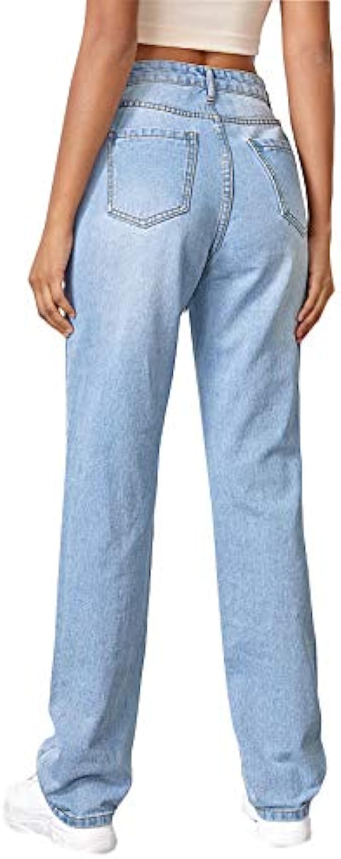 • Feature: high waist, straight leg, ripped, button, pocket, zipper