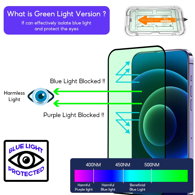 TBTIC For iPhone Screen Protector Tempered Glass 15 14 13 12 11 Pro Max Plus XR X Xs HD Matte Privacy Fingerprint Blueray Green Light With Auto Alignment Easy Install Full Coverage