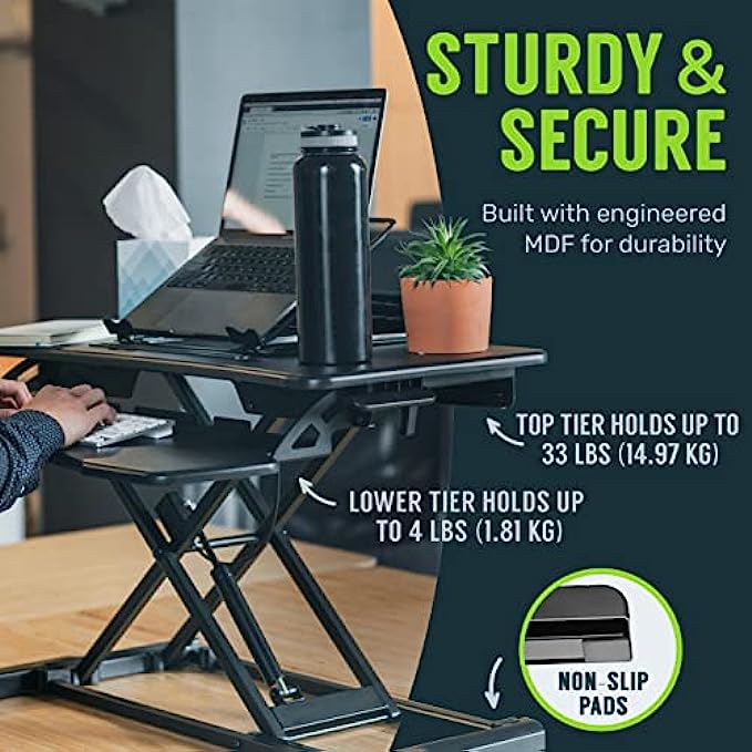 • STRONG - Crafted from quality MDF wood, this 2-tier, rising desk converter has the capacity to hold up to 35lbs on the top tier and up to 5lbs on the lower tier.