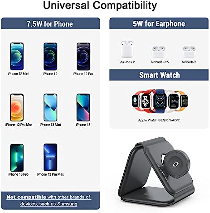 UCOMX Nano 3 in 1 Wireless Charger,Magnetic Foldable Charging Station,Fast Wireless Charging Pad,Compatible with iPhone 13/12/SE/11/XS/8,Samsung Galaxy,AirPods Pro,Apple Watch(Adapter Included)