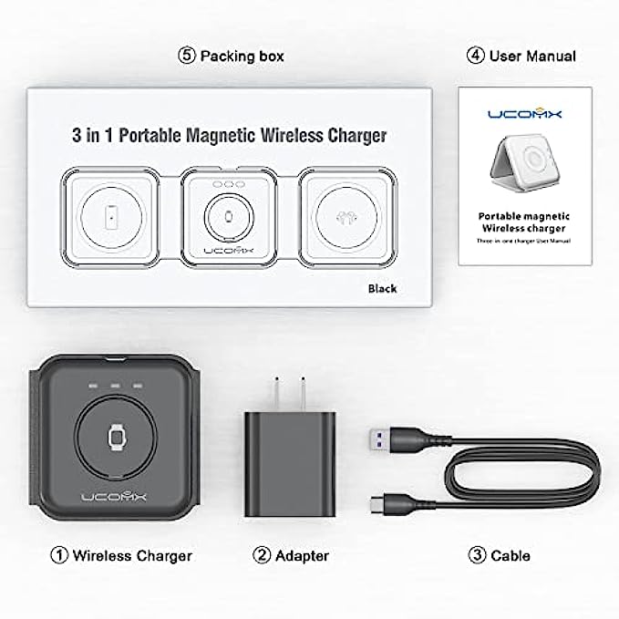 • Integrated Smart Apple Ecosystem: Many smart devices have become partners in our lives, and how to simplify the complexity to provide power for them has become very important. UCOMX NANO 3 in 1 WIRELESS apple charging station came into being. It can be charged efficiently, it is suitable for multiple scenarios or devices.Use the Equipped QC charger and cable to ensure that your smart devices are added huge energy power, revitalize it.