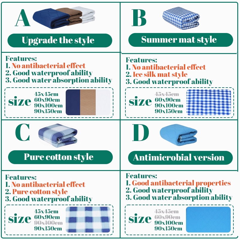 Underpad Waterproof Mat Pee Pad Adult Incontinence Pad Urine Pad Waterproof Mattress Protector Mat