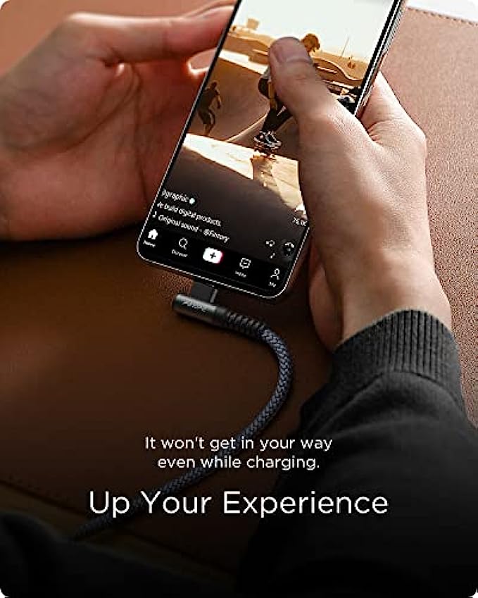• [Upgraded Exclusive Right Angle Design] This right angle type c charging cable fast charge with an innovative 90 degrees " L " design. It's user-friendly design more convenient and comfortable for playing games, watching videos, reading e-books when you charging. 【 NOTE: The thickness of the compatible mobile phone case charging port is 5.5mm.】